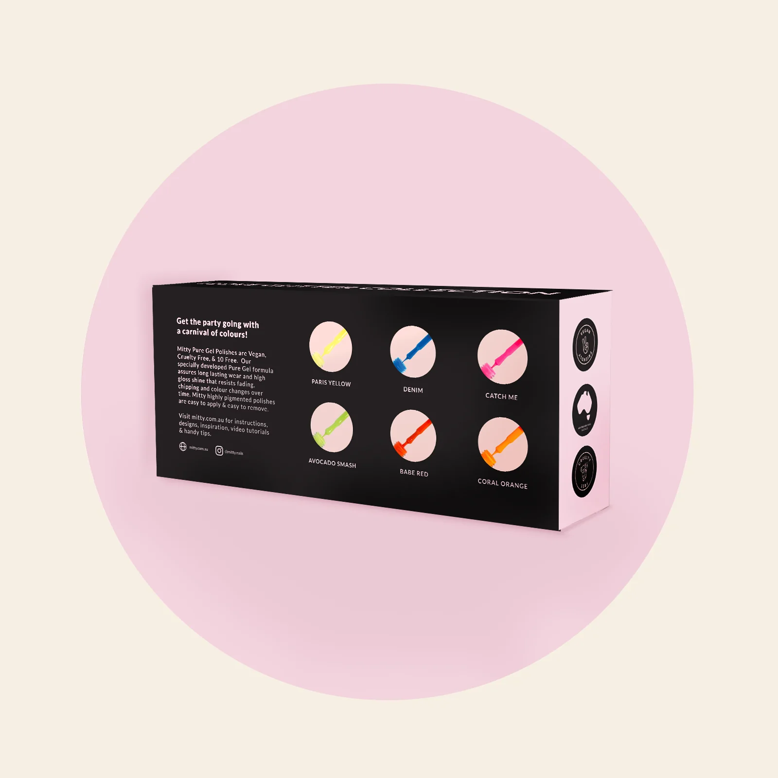 Celebrate, feel wild, stand out, create you with a collection of 6 playful shades. Indulge in an carnival of colour to brighten up your mani.