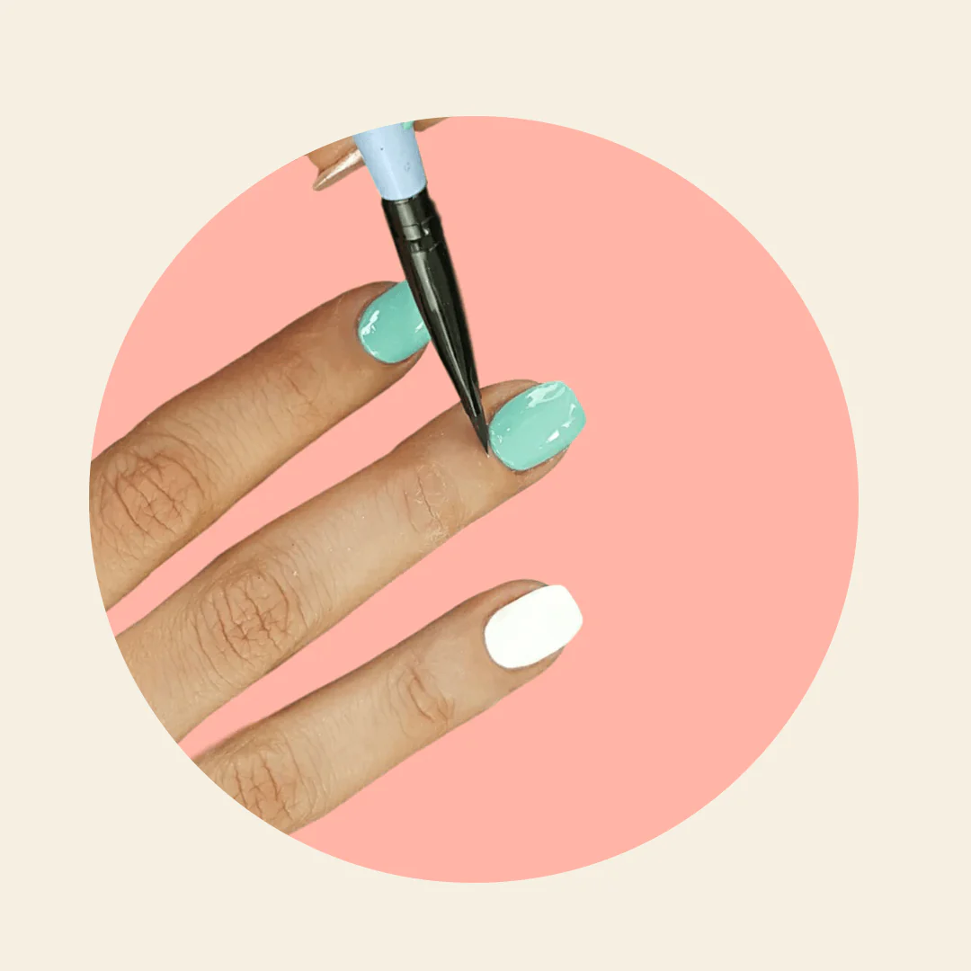 Medium bristles like Mitty Candy 00 & Minty 0: These nail art brushes are designed to for curved lines, shaped French tips, lettering, geometric shapes and line work. if you are a beginner at nail art, we recommend to use Candy 00 for shorter lines and Minty 0 for longer lines and curves.