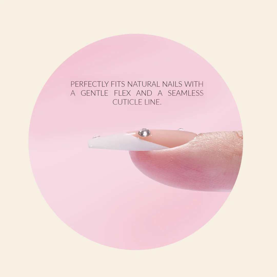 These aren't your average stick-ons. Our Powdery press-ons are made from high-quality soft gel, and finished with a layer of Builder In A Bottle (BIAB) — the same product trusted in salon-grade manicures. You get a flexible yet durable nail that mimics the look and feel of a gel mani, minus the soak-off.