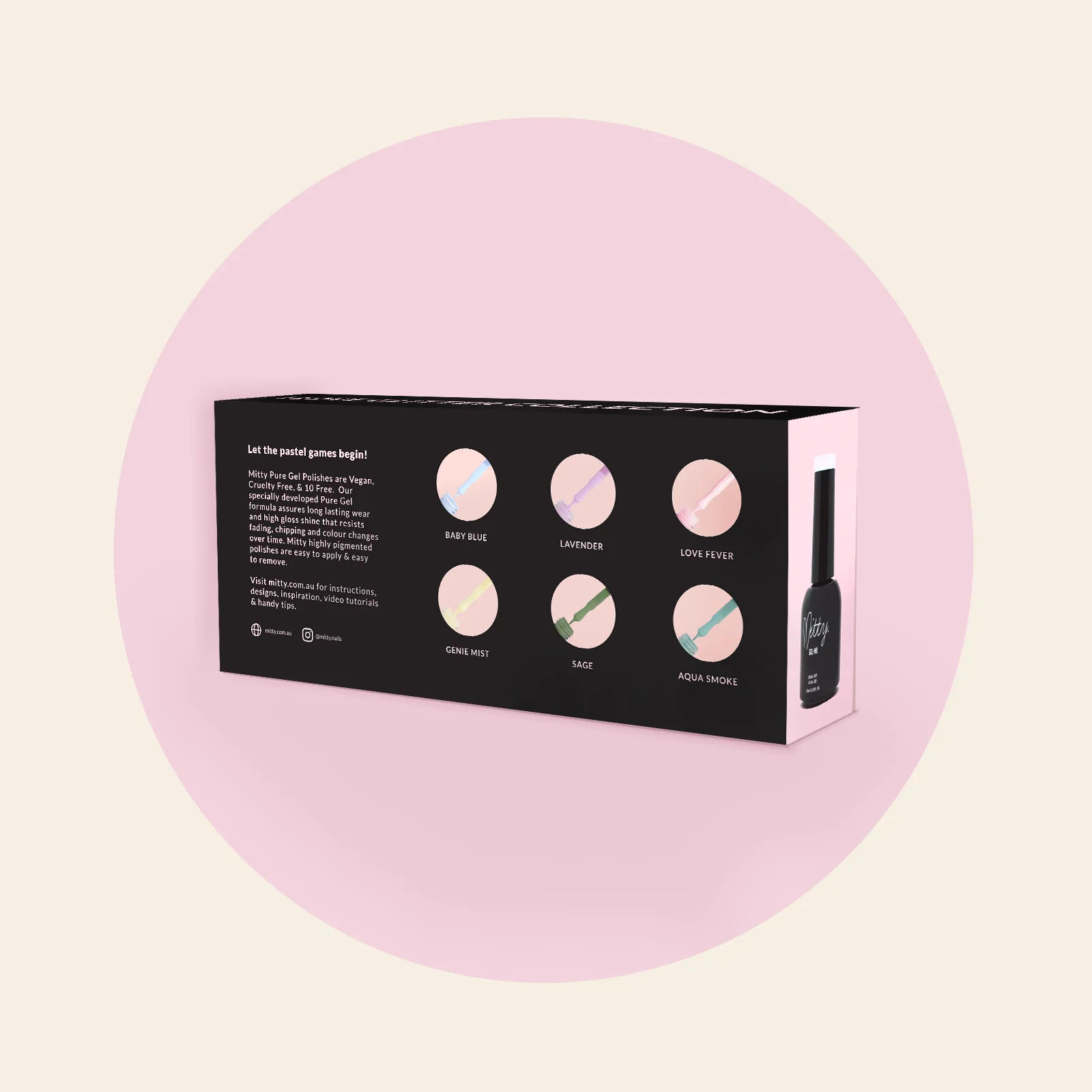 Fall in love with Mitty curated Pastel Gel polishes. These clean and cool pastel gel polishes are this seasons must have colours. Use them as a standalone or let your creative side flow with some cute nail art!
